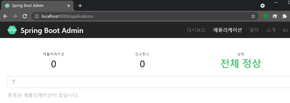 spring-boot-admin의 server-side 내역만 실행한 경우의 내역