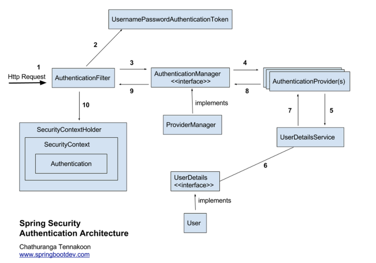 Spring Security Architecture를 검색하면 아래의 그림을 많이 볼 수 있다.